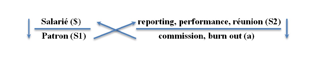 $ → le salarié partagé intérieurement (en quête de reconnaissance / sens)