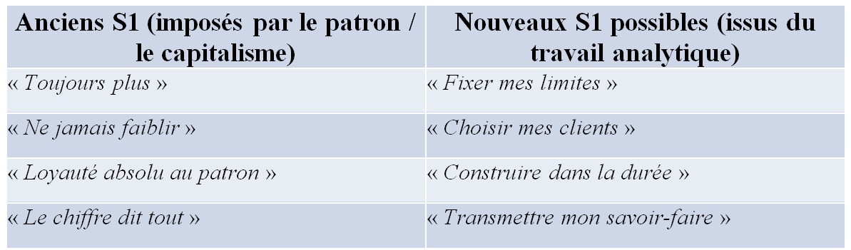 Mais la perspective de créer sa propre entreprise ouvre une autre voie. Cet acte ne relève pas seulement d’une décision économique : il a valeur d’acte symbolique. Il marque la possibilité de ne plus dépendre uniquement d’un patron pour obtenir reconnaissance, mais de poser soi-même ses propres repères. Ce ne sont plus les injonctions de l’entreprise qui dictent sa loi, mais ses propres choix, validés par ses futurs clients. Ce que la cure analytique rend possible, ce n’est pas simplement d’échapper à un patron ou de changer de structure : c’est de s’autoriser de son désir, et de trouver les repères qui peuvent soutenir une position nouvelle.